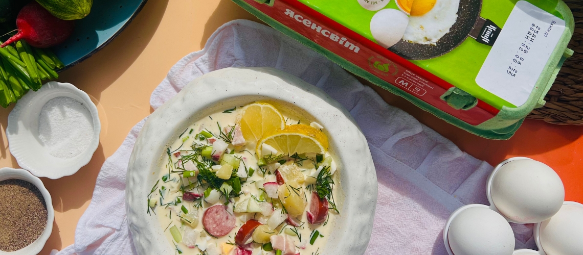Українська окрошка готова. Насолоджуйтесь смаком без шкоди для вашої фігури.